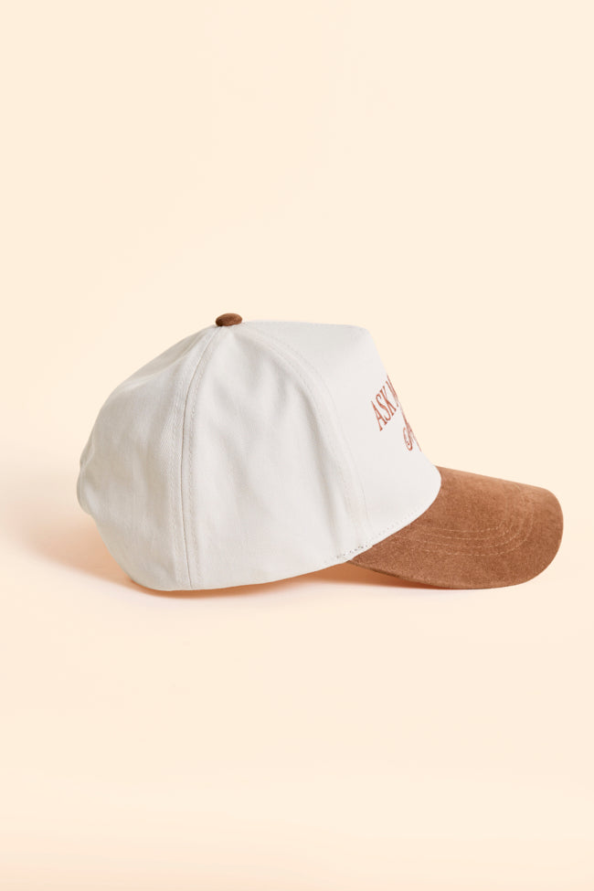 • Two tone brown trucker hat with faux suede bill and dog design