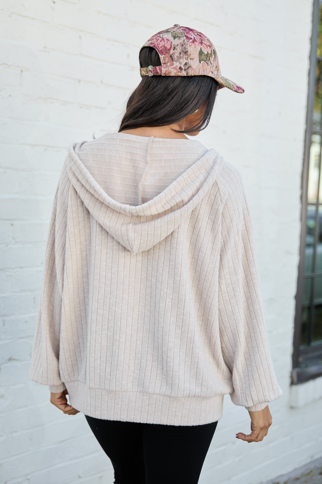 Be the first to review “Baylor Beige Balloon Sleeve Ribbed Hoodie”