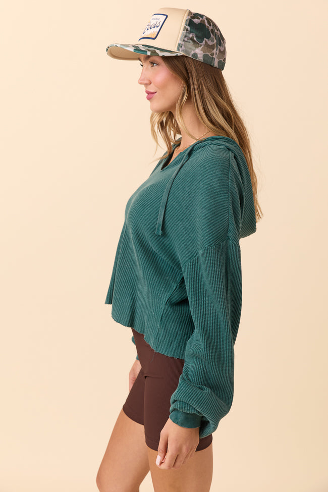 Marnie Deep Green Long Sleeve Mineral Wash Thermal Hoodie