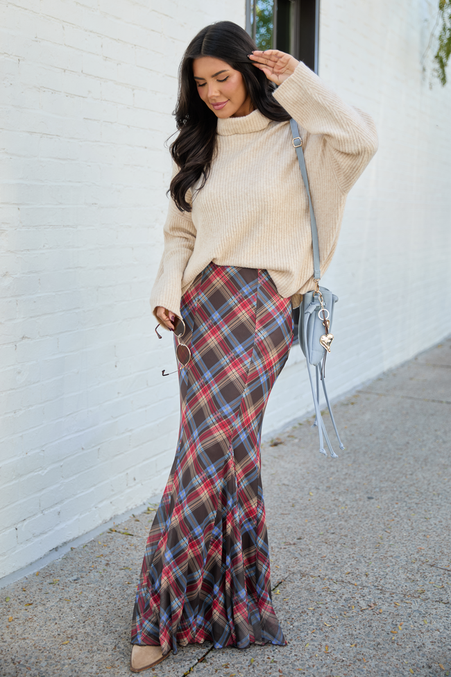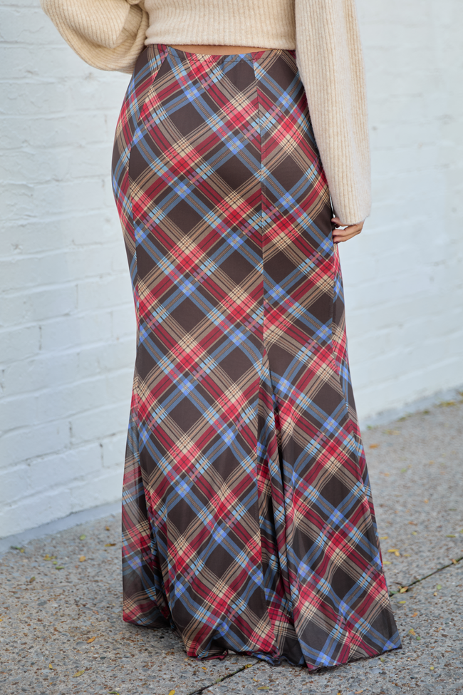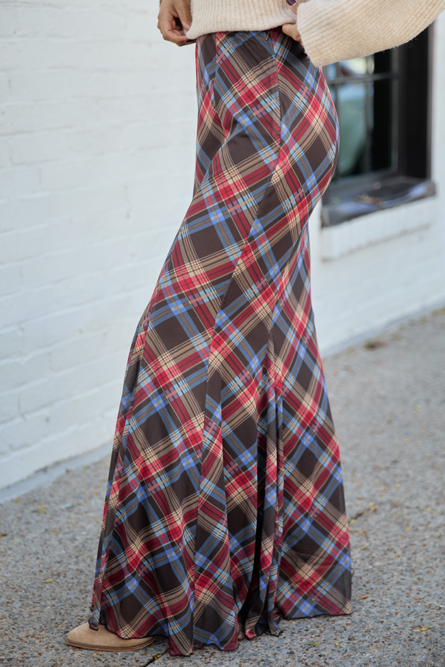 Anna Marie Brown Plaid Knit Maxi Skirt