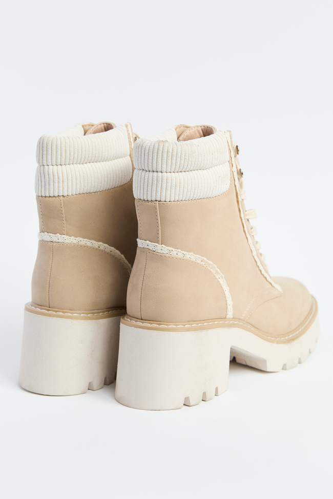 - A hiking-inspired lace-up bootie