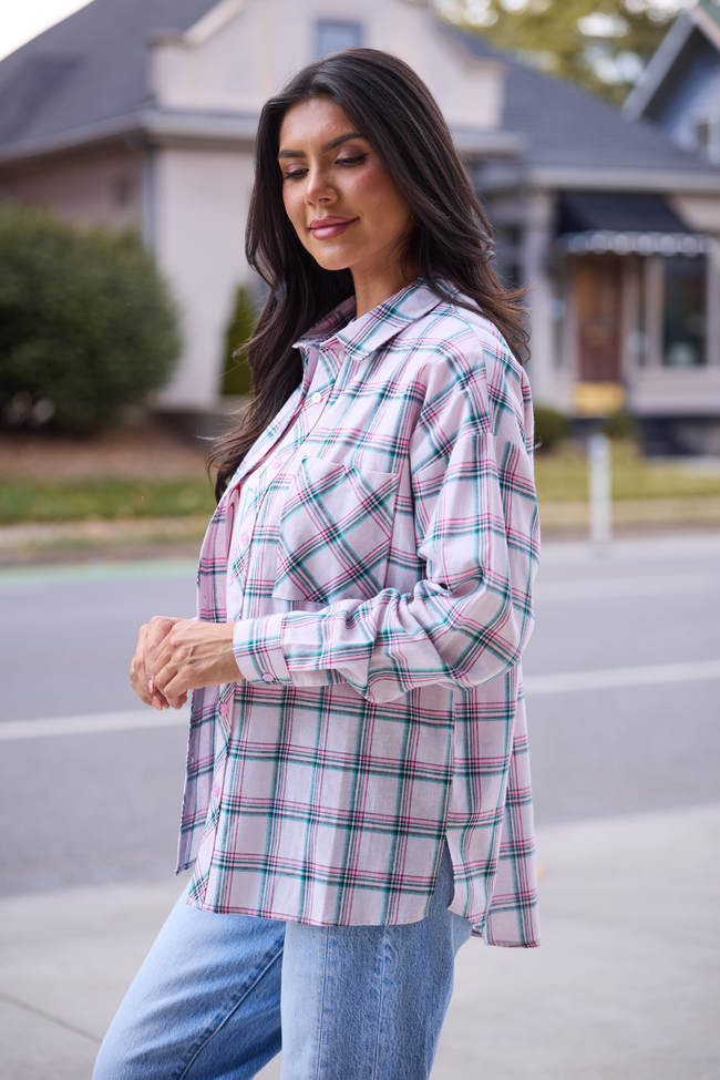 Be the first to review “Rory Pink And Green Holiday Plaid Flannel Top”